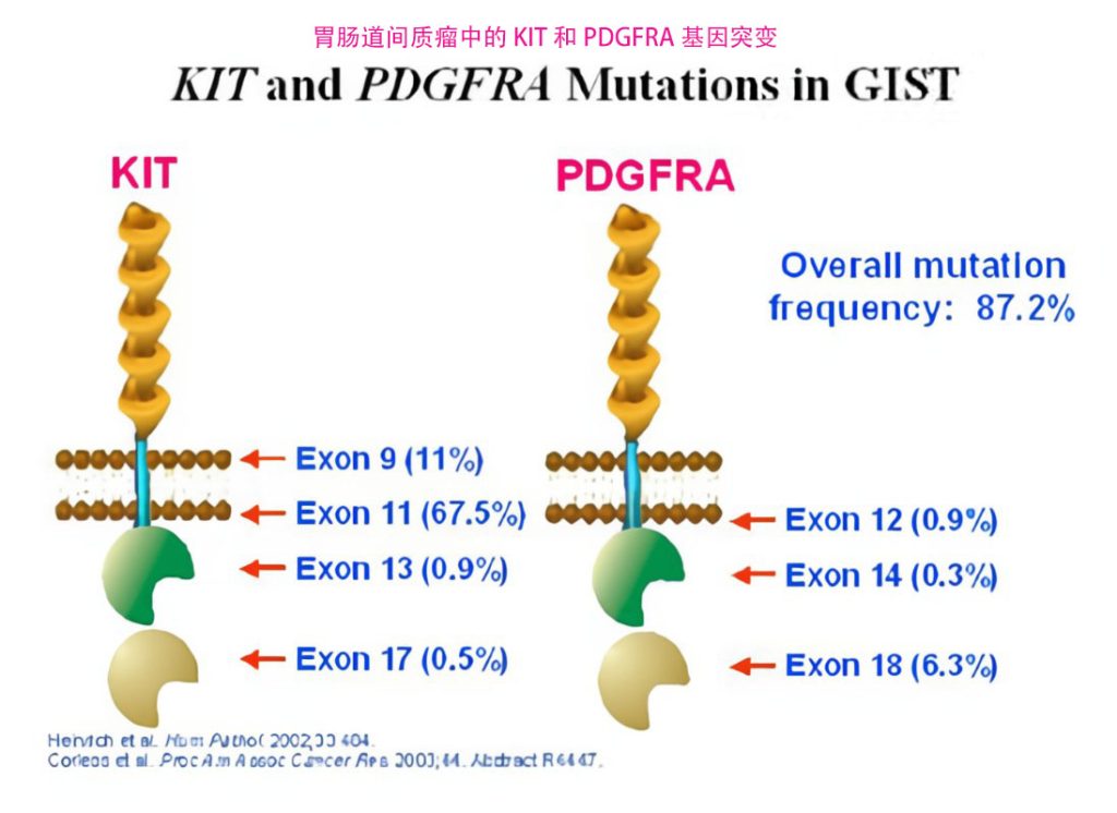 12. KIT:与胃肠道间质瘤等肿瘤的发生相关,KIT抑制剂可用于治疗KIT阳性的消化道肿瘤。